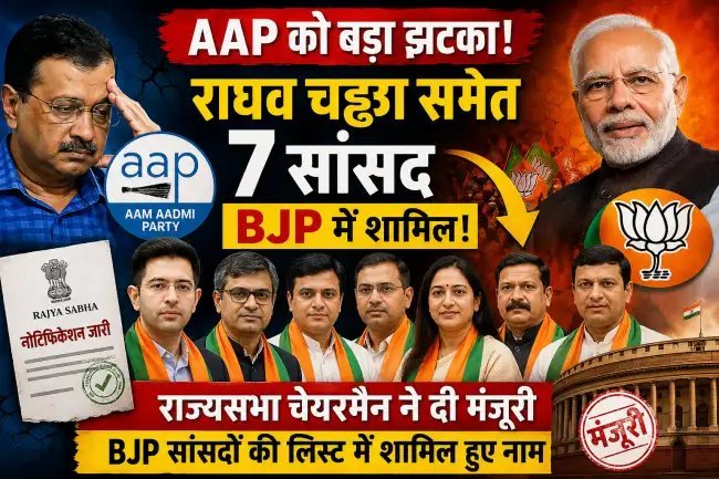 नई दिल्ली: आम आदमी पार्टी (AAP) के लिए बड़ी राजनीतिक हलचल वाली खबर सामने आई है। राज्यसभा में पार्टी को उस समय बड़ा झटका लगा, जब उसके 7 सांसदों के भारतीय जनता पार्टी (BJP) में शामिल होने के प्रस्ताव को राज्यसभा चेयरमैन ने मंजूरी दे दी। इस फैसले के बाद जारी नोटिफिकेशन में इन सभी नेताओं के नाम अब बीजेपी सांसदों की सूची में शामिल कर दिए गए हैं।