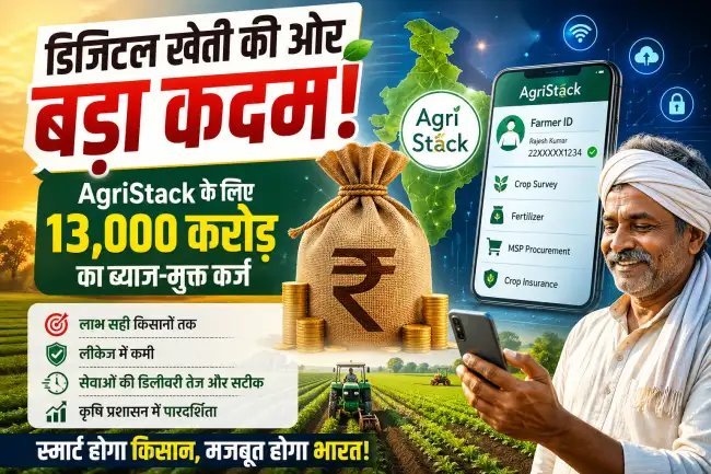 देश में कृषि क्षेत्र को डिजिटल रूप से मजबूत बनाने के लिए केंद्र सरकार ने बड़ा और अहम फैसला लिया है. सरकार राज्यों और केंद्र शासित प्रदेशों को 13,000 करोड़ रुपये तक का ब्याज-मुक्त कैपेक्स कर्ज देने जा रही है, जिससे राष्ट्रीय स्तर पर डिजिटल पब्लिक इंफ्रास्ट्रक्चर यानी AgriStack का तेजी से विस्तार किया जा सके. इस पहल का उद्देश्य किसानों तक सरकारी योजनाओं का लाभ सही तरीके से पहुंचाना, पारदर्शिता बढ़ाना और सेवाओं को अधिक प्रभावी बनाना है.