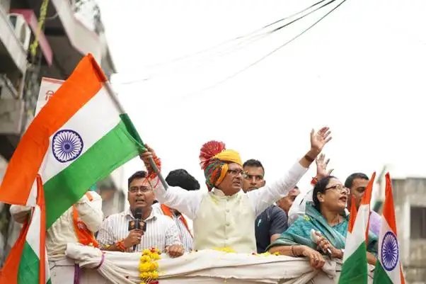विदिशा, रायसेन में केंद्रीय कृषि मंत्री शिवराज सिंह चौहान ने निकाली तिरंगा यात्रा