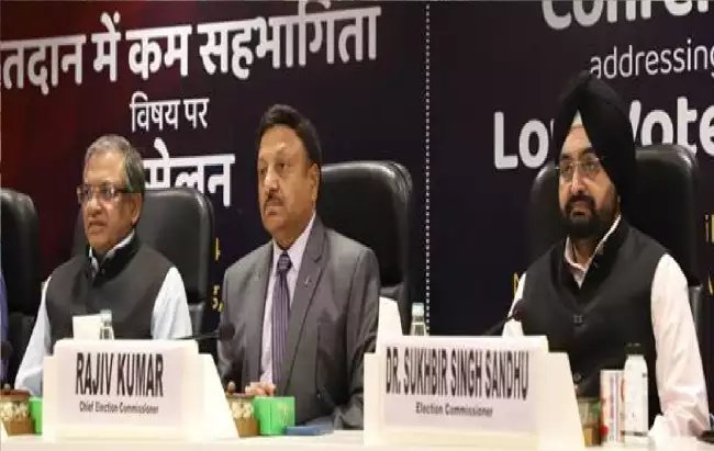 ֆ:§ֆ:§ֆ:§2024 के आम चुनावों के लिए मतदान से पहले, भारत का निर्वाचन आयोग (ईसीआई) पिछले आम चुनावों में मतदाताओं की कम भागीदारी वाले संसदीय निर्वाचन क्षेत्रों (पीसी) में मतदाता संख्याि बढ़ाने के प्रयासों में तेजी ला रहा है। निर्वाचन सदन, नई दिल्ली में आयोजित एक दिवसीय ‘मतदान में कम सहभागिता पर सम्मेलन’ में, प्रमुख शहरों के निगम आयुक्तों और बिहार व उत्तमर प्रदेश के चुनिंदा जिला चुनाव अधिकारियों (डीईओ) ने चिन्हित शहरी और ग्रामीण पीसी में मतदाताओं के चुनाव से जुड़ने और उनकी भागीदारी बढ़ाने की दिशा में एक रास्ता तैयार करने के लिए एक साथ विचार-विमर्श किया। इस सम्मेलन की अध्यक्षता मुख्य चुनाव आयुक्त श्री राजीव कुमार के साथ चुनाव आयुक्तों श्री ज्ञानेश कुमार और श्री सुखबीर सिंह संधू ने की। इस अवसर पर आयोग द्वारा मतदाताओं की उदासीनता पर एक पुस्तिका का विमोचन किया गया।