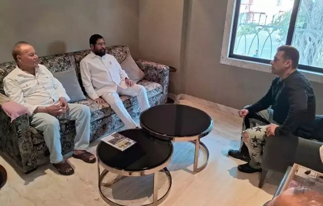 §बॉलीवुड सुपरस्टार सलमान खान के घर के बाहर हुई फायरिंग ने फैंस को हिला कर रख दिया। इस मामले में अब लगातार तेजी के साथ कार्रवाई की जा रही है। हाल में ही आरोपियों को भी पुलिस ने गिरफ्तार कर लिया है। दोनों से पूछताछ जारी है। इसी के मद्देनजर सलमान खान के घर के बाहर सुरक्षा के कड़े इंतजाम किए गए हैं। इसी बीच महाराष्ट्र के सीएम एकनाथ शिंदे भी सलमान खान से मिलने उनके आवास गैलेक्सी अपार्टमेंट्स पहुंचे। इस मुलाकात की तस्वीरें भी सामने आई हैं, जिसमें सीएम शिंदे सलमान खान और सलीम खान से बातचीत करते नजर आ रहे हैं।