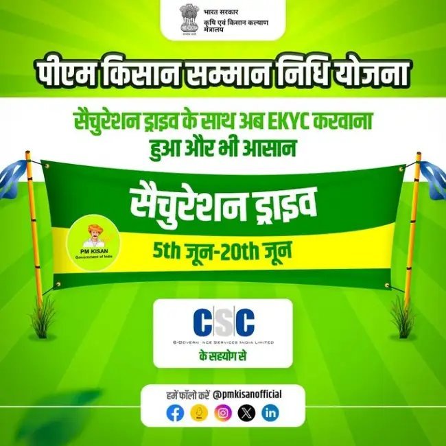 पीएम किसान सैचुरेशन ड्राइव के दौरान की eKYC है सरल, सुविधाजनक और सुरक्षित। अधिक जानकारी के लिए आज ही अपने नज़दीकी जनसेवा केंद्र पर संपर्क करें।#PMKisanSaturationDrive #PMKisan pic.twitter.com/Mt69ILxWXR