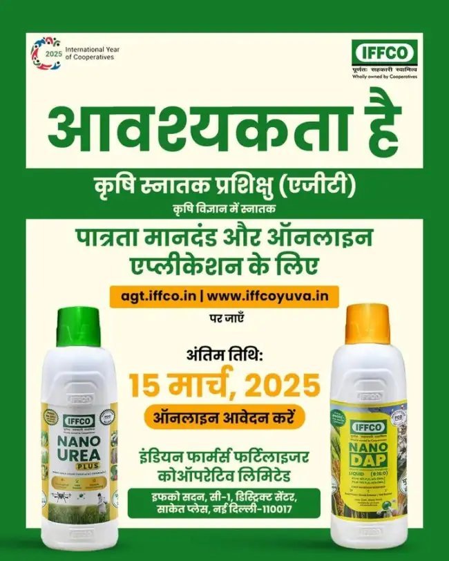 #इफको दे रहा है #कृषि #विज्ञान मे #स्नातक #युवाओं को एक सुनहरा #अवसर