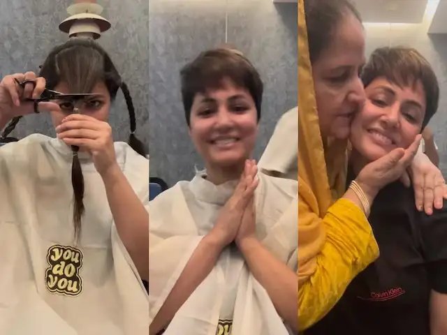 ֍:हिना खान ने शेयर कया वीडियो§ֆ:वीडियो में आप देखेंगे कि हिना कुर्सी पर बैठी होती हैं और अपनी मां को बोलती हैं कि रो मत, बाल ही तो कटवा रही हूं। फिर आ जाएंगे, तुमने भी तो कई बाल अपने बाल काटे हैं और वो फिर आ गए थे न तो मेरे भी आ जाएंगे। उनकी मां रोती रहती हैं। तभी हिना के बॉयफ्रेंड रॉकी की आवाज आती है और वह कहते हैं कि चलो आंटी अब रोना मत। वह फिर बोलती हैं कि मैं दुआ कर रही हूं। हिना के जो बाल काटने आते हैं वह हिना को सबसे पहले बाल की लेयर को काटने के लिए बोलते हैं। इसके बाद हिना के लंबे बालों को काटकर छोटे बाल वाला हेयरस्टाइल बना देते हैं।