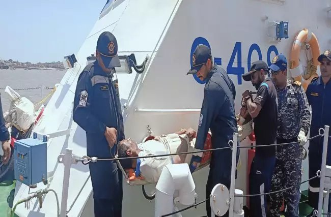 §भारतीय तटरक्षक स्टेशन पिपावाव ने खंबात की खाड़ी में तट से 50 किलोमीटर दूर, पुष्कर राज नामक एक भारतीय मछली पकड़ने वाली नौका से 37 साल के गंभीर रूप से घायल मछुआरे को सुरक्षित निकाला। सूचना मिलने पर भारतीय तटरक्षक इंटरसेप्टर (घुसपैठ विरोधी) नौका सी-409 को भेजा गया और समुद्री बचाव उपकेंद्र, पीपावाव ने यह कार्रवाई की।