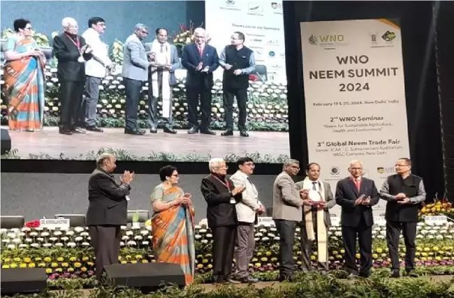 ֆ:विशिष्ट अतिथियों ने मानव कल्याण में नीम के महत्व को रेखांकित किया। देश में नीम लेपित यूरिया और नीम आधारित स्वास्थ्य उत्पादों को बढ़ावा देने को प्राथमिकता दिए जाने के साथ ही नीम उगाना महत्वपूर्ण हो गया है और इसके लिए एक राष्ट्रीय स्तर के मिशन की आवश्यकता है।कुल मिलाकर, शिखर सम्मेलन के दौरान नीम को वृक्षारोपण वानिकी के विकल्प के रूप में चिह्नित किया गया, जो उद्योग की कच्चे माल की आवश्यकताएं पूरी करेगा। साथ ही इस कार्यक्रम में कार्बन खेती के लिए भी नीम के पेड़ों की वकालत की गई।