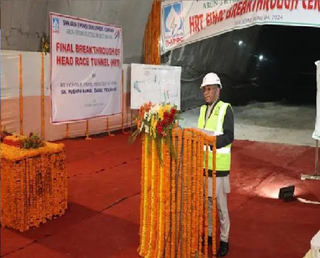 §नेपाल के प्रधानमंत्री श्री पुष्प कमल दहल ‘प्रचंड’ ने नेपाल के संखुवासभा जिले में 900 मेगावाट अरुण-3 जलविद्युत परियोजना की 11.8 किलोमीटर लंबी हेड रेस टनल के लिए उत्खनन के पूरा होने के उपलक्ष्य में अंतिम विस्फोट कर सुरंग का उद्घाटन किया। अरुण-3 जलविद्युत परियोजना का निर्माण एसजेवीएन अरुण-3 पावर डेवलपमेंट कंपनी प्राइवेट लिमिटेड (एसएपीडीसी) द्वारा किया जा रहा है, जो एसजेवीएन की पूर्ण स्वामित्व वाली सहायक कंपनी है। एसएपीडीसी एसजेवीएन और नेपाल सरकार के बीच एक महत्वपूर्ण सहयोग है, जिसका उद्देश्य अरुण नदी बेसिन में सतत जलविद्युत उत्पादन के माध्यम से क्षेत्रीय ऊर्जा सुरक्षा को बढ़ाना और आर्थिक विकास को बढ़ावा देना है।सुरंग निर्माण कार्य के शुभारंभ समारोह में नेपाल के ऊर्जा, जल संसाधन एवं सिंचाई मंत्री श्री शक्ति बहादुर बसनेत, नेपाल के प्रांत-1 के स्वास्थ्य मंत्री श्री राजेन्द्र कार्की, नेपाल में भारत के राजदूत श्री नवीन श्रीवास्तव, एसजेवीएन के अध्यक्ष एवं प्रबंध निदेशक श्री सुशील शर्मा, नेपाल के निवेश बोर्ड के मुख्य कार्यकारी अधिकारी श्री सुशील भट्ट, एसएपीडीसी के मुख्य कार्यकारी अधिकारी श्री अरूण धीमान, एसजेवीएन के कार्यकारी निदेशक श्री राकेश सहगल तथा नेपाल सरकार के अन्य अधिकारी एवं स्थानीय अधिकारी उपस्थित थे।