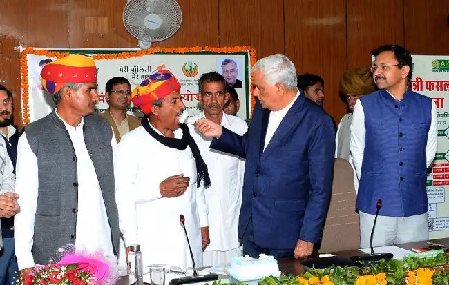 ֆ:डॉ. मीणा ने कहा कि किसानों को ओलावृष्टि, चक्रवात और चक्रवाती वर्षा जैसी प्राकृतिक आपदाओं से नुकसान झेलना पड़ता है। इन आपदाओं से कृषकों को राहत प्रदान करने के लिये केन्द्र सरकार द्वारा चलाई जा रही प्रधानमंत्री फसल बीमा योजना वरदान साबित हो रही है। केन्द्र व राज्य सरकार द्वारा निरन्तर प्रचार-प्रसार और किसानों को समय पर बीमा क्लेम का भुगतान मिल जाने से इस योजना की लोकप्रियता बढ़ती जा रही है। उन्होंने कहा कि किसानो को इन विकट परिस्थितियों में नुकसान होने पर सरकार द्वारा सहायता मिलने से आर्थिक मजबूती मिलती है, जिससे वे अपने परिवार का पालन पोषण अच्छी तरह से कर पाते हैं। पॉलिसी वितरण के दौरान किसान पाठशाला के माध्यम से योजनाओं का प्रचार-प्रसार सभी ग्राम पंचायतों में किया जाएगा। बीमा कंपनियों द्वारा राज्य के सभी ग्राम पंचायत स्तर पर शिविरों का आयोजन कर लगभग 27.84 लाख कृषकों को लगभग 1.59 करोड़ पॉलिसियों का वितरण किया जाएगा।