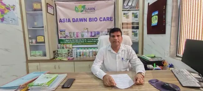 ֍:एशिया डॉन बायो-केयर किस तरह से किसानो की सेवा कर रही है §ֆ:एशिया डॉन बायोकेयर किसानों को विषरहित फसल उत्पादन के लिए विष रहित उत्पाद तैयार कर देती है। कंपनी के अधिकतम उत्पाद स्वयं के संशोधन से तैयार किए गए हैं । प्रकृति के साथ तालमेल करके किस प्रकार भरपूर उत्पादन प्राप्त हो इस बात को ध्यान में रखकर कंपनी किसानों के लिए बेहतरीन उत्पाद का निर्माण करती है। कंपनी समय-समय पर किसानों के लिए प्रशिक्षण कार्यक्रम आयोजित करती है। जिससे किसान को फसल उत्पादन में प्रयोग किए जाने वाले कंपनी के उत्पाद की सही जानकारी हो। प्रमाणिक जैविक फसल उत्पादन के लिए प्रमाणित या अनुमोदित आदान की आवश्यकता होती है। §֍:आजकल आप देश के विभिन्न राज्यों में प्रशिक्षण कार्यक्रम आयोजित कर रहे हैं उसका उद्देश्य क्या है?§ֆ:हमारे प्रशिक्षण कार्यक्रम में विक्रेता एवं किसानों को प्रशिक्षण दिया जाता है। प्रशिक्षण में विक्रेताओं को उत्पाद एवं फसलों के रोग की पूरी जानकारी दी जाती है। बहुत से किसान विक्रेताओं से संपर्क करके ही अपने फसल में पोषक तत्व एवं फसल संरक्षण का प्रबंध करते हैं। विक्रेता को पूरी जानकारी होने पर ही वह किसान को फसल में उचित समय उचित उत्पाद प्रयोग करने की सलाह दे सकता है। §֍:प्रशिक्षण के दौरान किसानों को किस तरह की जानकारी उपलब्ध की जा रही है?§ֆ:किसान प्रशिक्षण के दौरान जिस क्षेत्र में जो फसल बहुत होती है तथा किसान की मुख्य फसल को ध्यान में रखकर फसल के अनुरूप उसको प्रशिक्षण दिया जाता है। उदाहरण के लिए केला उत्पादन के क्षेत्र में केला उत्पादक किसानों, धान उत्पादन क्षेत्र में धान उत्पादक किसानों, सब्जी उत्पादक क्षेत्र के में सब्जी उत्पादक किसानों को विशेष प्रशिक्षण एवं पाली हाउस में सब्जी उत्पादन करने वाले किसानों को अलग से प्रशिक्षित किया जाता है। इस प्रशिक्षण के दौरान खेती किस प्रकार की जाए और खेती के उत्पादन लागत में कमी कैसे की जाए एवं एशिया डॉन बायोकेयर द्वारा बनाए गए जैविक उत्पादक जैविक कीटनाशक, बायोफर्टिलाइजर एवं माइक्रो न्यूट्रिएंट किस फसल में कब कितना, किस प्रकार प्रयोग करना है पूरी जानकारी दी जा रही है। प्रशिक्षण के दौरान मृदा में हो रहे सूक्ष्मजीवाणु एवं पोषक तत्वों के ह्रास के कारकों को विस्तार में समझाया जाता है। किसानों को फसल अवशेष प्रबंधन की पूरी जानकारी दी जाती है जिससे वह जिससे मिट्टी में जैविक कार्बन की मात्रा वृद्धि हो, उत्पादन लागत में कमी हो और अच्छी उपज प्राप्त हो। §֍:आपके पास कितने तरह के उत्पाद उपलब्ध हैं?§ֆ:एशिया डॉन बायोकेयर लगभग 60 तरह के उत्पाद बनाती है जिसमें बायोफर्टिलाइजर,बायोपेस्टिसाइड, माइक्रोन्यूट्रिएंट, कंपलेक्सआदि बनाए जाते हैं। बायोफर्टिलाइजर मे