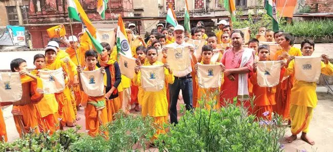 §गंगा स्वच्छता और पॉलीथिन के खिलाफ चलाए जा रहे जन जागरूकता अभियान के तहत गुरुवार को नमामि गंगे ने वेद पाठी बटुकों के साथ लोगों को सजग किया। नमामि गंगे के सदस्यों ने महर्षि योगी विद्याश्रम सिद्धेश्वरी के बटुकों के साथ पॉलिथीन से होने वाले नुकसान के साथ ही गंदगी को रोकने की अपील की। कहा की पॉलीथिन के इस्तेमाल को बंद करके हम काशी को और गंगा को स्वच्छ बना सकते हैं ।