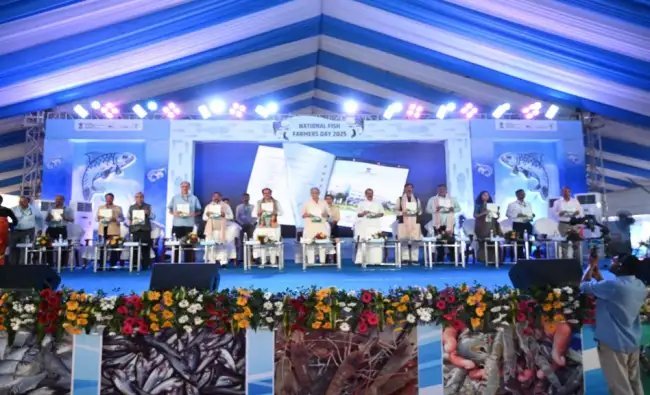 मत्स्य पालन, पशुपालन और डेयरी मंत्रालय द्वारा राष्ट्रीय मछुआरा दिवस 2025 का आयोजन ICAR–सेंट्रल इंस्टीट्यूट ऑफ फ्रेशवाटर एक्वाकल्चर (CIFA), भुवनेश्वर, ओडिशा में भव्य रूप से किया गया। इस अवसर पर केंद्रीय मंत्री राजीव रंजन सिंह ने देशभर के मत्स्य पालकों की उपलब्धियों को सम्मानित करते हुए प्रधानमंत्री मत्स्य संपदा योजना (PMMSY) के तहत 17 नए मत्स्य क्लस्टर्स की शुरुआत की।