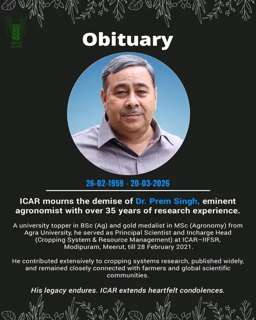 प्रख्यात कृषि वैज्ञानिक डॉ. प्रेम सिंह का निधन, ICAR ने जताया शोक