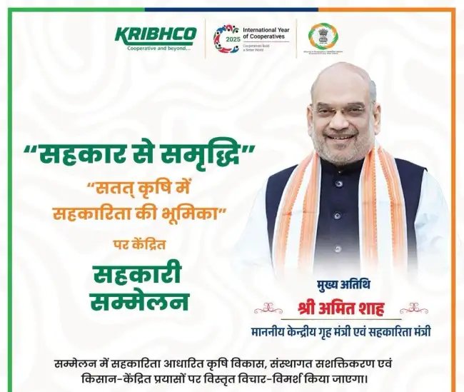 कृभको द्वारा पंचकूला में आयोजित राष्ट्रीय सहकारी सम्मेलन को आज संबोधित करेंगे केंद्रीय गृह एवं सहकारिता मंत्री अमित शाह