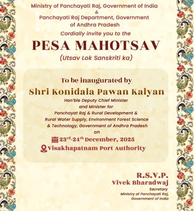 विशाखापत्तनम में 23–24 दिसंबर को ‘पेसा महोत्सव’ का भव्य आयोजन, पेसा पोर्टल और संकेतकों का होगा शुभारंभ
