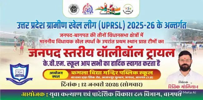 UPRSL 2025–26: बागपत में जनपद स्तरीय वॉलीबॉल ट्रायल का आयोजन, चार विधानसभाओं के खिलाड़ी होंगे शामिल