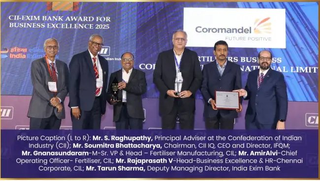 कोरोमंडल के उर्वरक व्यवसाय ने 33वें CII उत्कृष्टता शिखर सम्मेलन 2025 में दो प्रमुख पुरस्कार जीते