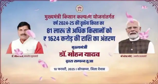 मध्य प्रदेश के लाखों किसानों को मुख्यमंत्री किसान कल्याण योजना की 11वीं किस्त आज मिल गई है. राज्य सरकार की ओर से किसानों के बैंक खातों में राशि सीधा ट्रांसफर की गई है.