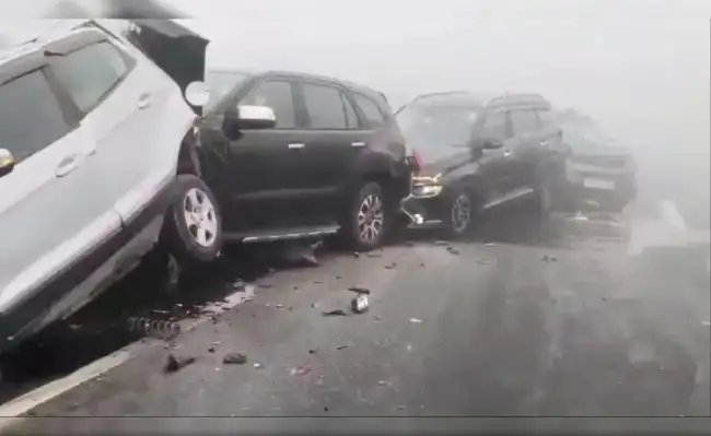 UP: कोहरे का कोहराम! हापुड़ हाईवे पर भिड़ी 5 कारें...