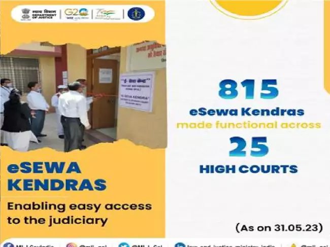 25 उच्च न्यायालयों के अंतर्गत 815 ई-सेवा केंद्रों की स्था पना की गई है, जिससे कि सभी हितधारकों को न्यायालयों की नागरिक-केंद्रित सेवाओं और मामलों से संबंधित जानकारी का ........