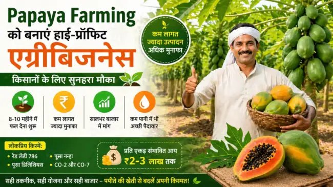 Papaya Farming में रोग नियंत्रण और अधिक उत्पादन के सीक्रेट्स जानें। यह किसानों के लिए एक व्यावहारिक गाइड है जो उत्पादन बढ़ाने और नुकसान कम करने में मदद करेगा।