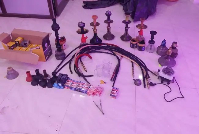 कैफे में चल रहे अवैध हुक्का बार मे नाबालिग बच्चो को पिलाया जा रहा था तम्बाकू वाला हुक्का