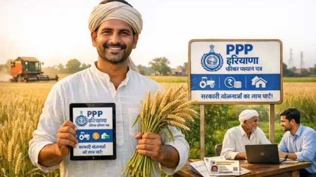 हरियाणा के किसान कृष्ण चौधरी की सच्ची कहानी, जिसमें गेहूं की खेती, परिवार की जिम्मेदारियाँ और PPP हरियाणा राशन कार्ड के जरिए सरकारी योजनाओं से जुड़कर बेहतर जीवन की राह दिखाई गई है।